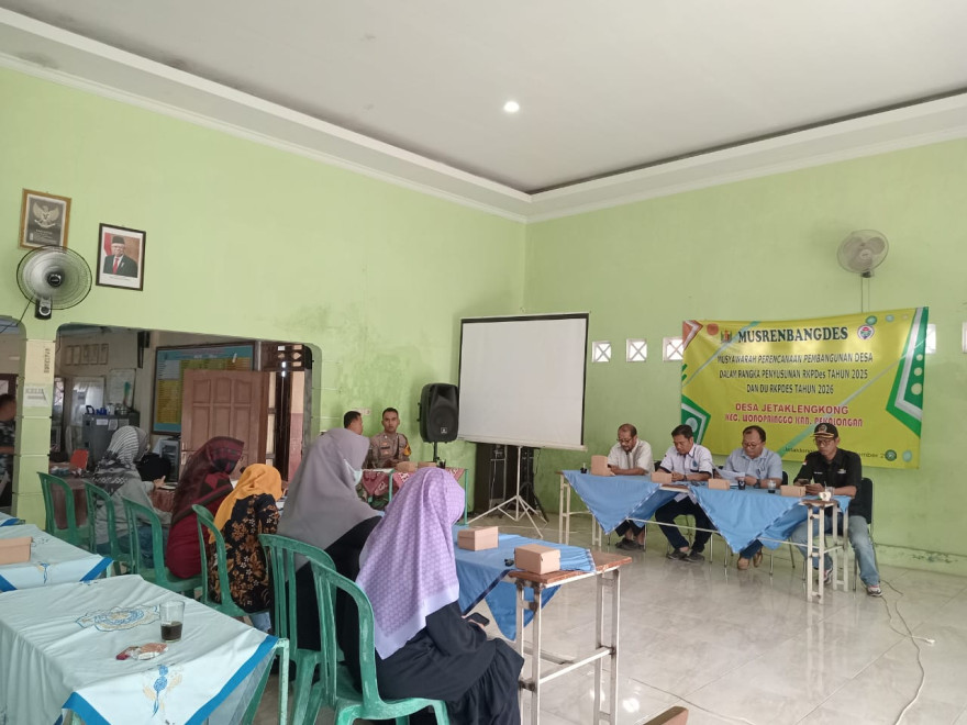 Desa Jetaklengkong, Kecamatan Wonopringgo, Kabupaten Pekalongan telah sukses menggelar Musyawarah Perencanaan Pembangunan Desa (Musrenbangdes) pada 27 September 2024 di Balaidesa Jetaklengkong untuk merumuskan Rencana Kerja Pemerintah Desa (RKPDes) tahun anggaran 2025. Musrenbangdes menjadi wadah penting bagi masyarakat untuk berpartisipasi aktif dalam perencanaan pembangunan desa.